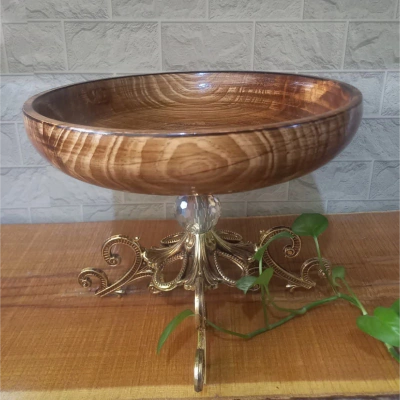 میوه‌خوری شیک و مجلل، ساخته‌شده از چوب گردوی طبیعی با پایه طلایی براق. طراحی خاص و قطر 30 سانتی‌متری آن، انتخابی عالی برای پذیرایی و دکوراسیون منزل شماست.